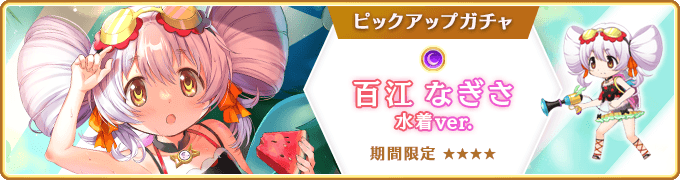 7月14日16:00より、『期間限定 百江なぎさ 水着ver. ピックアップガチャ』を開始いたしました。