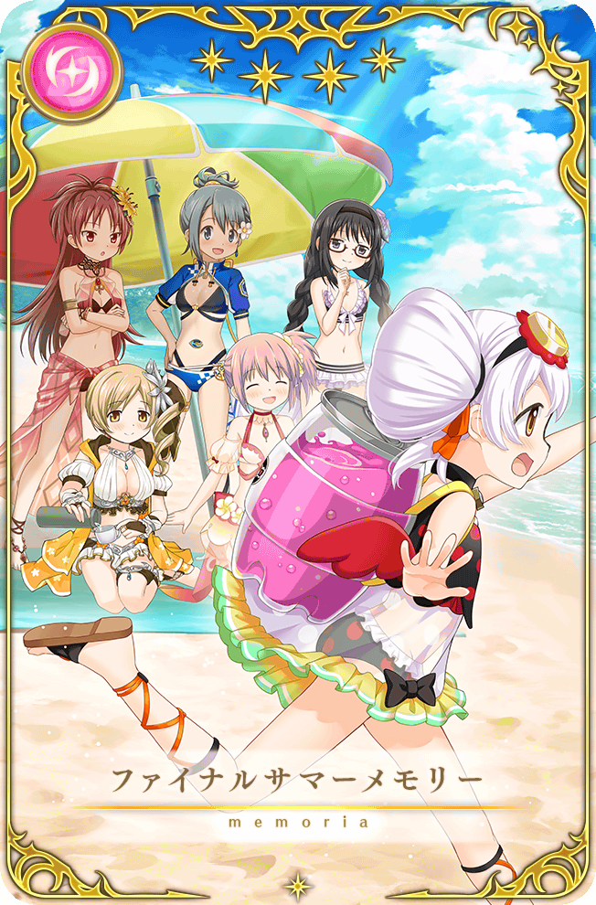 本ガチャより、新魔法少女「百江なぎさ 水着ver.(CV.阿澄佳奈)」と、新メモリア「ファイナルサマーメモリー」「大人買いに憧れて」が期間限定で登場いたしました。