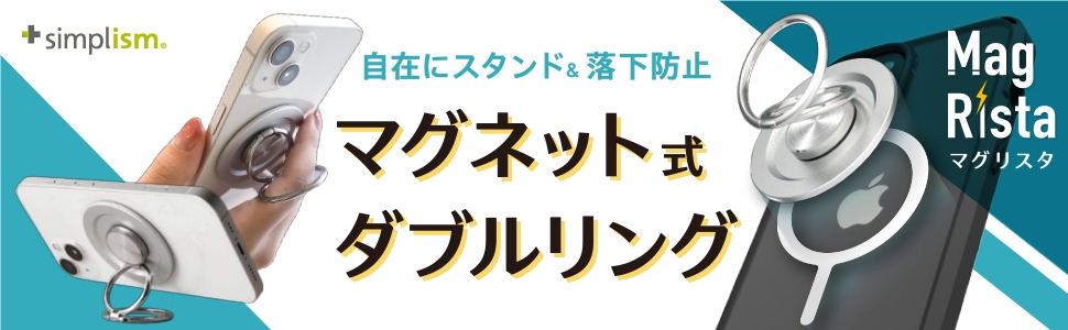 シンプルの中にもプラスがあるブランド「Simplism」より、使用中のケースがMagSafe対応になるメタルリングと、リングスタンドを発売