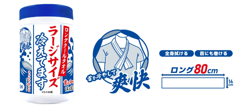 株式会社iiもの本舗(本社:群馬県佐波郡玉村町藤川184-4、代表取締役:市石 一仁)は、2024年シーズン販売実績前年比300%超え、累計販売個数30万個突破と多くのお客様から好評を得ている、超大判クールタオルラージサイズ冷えてますを「冷えてます」シリーズとして新たにリブランディングし、最新コンセプトから生まれた新商品を2025年3月17日(月)に発売します。2024年は暑さ対策だけでなく防災用品としてのお問い合わせも多くいただき、さらにシリーズアイテムを増やしてお客様の欲しい!に応えました。バラエティショップ様・ホームセンター様を中心に取扱店舗が大幅に拡大する見込みです。