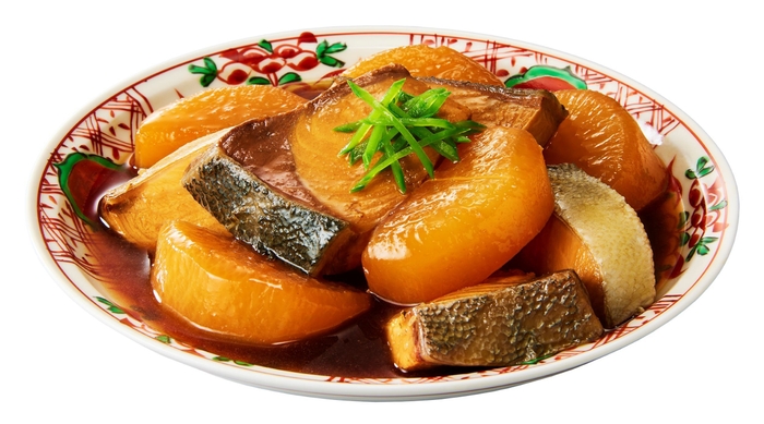 『神田川監修 ぶり大根のつゆ』は、丸大豆醤油に、昆布の旨み、三温糖・黒みりんの甘み、純米酒と生姜の風味をほんのり効かせ、隠し味にみそを用いることで、コク深い味わいに仕上げた濃縮タイプの専用調味料です。本品で煮立てた大根に、下ごしらえしたブリを加え煮込むこと約10分。器に盛って、きぬさやを添えれば、冬の一品が楽しめます。