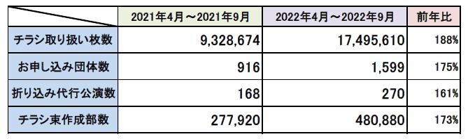 舞台公演主催者の「宣伝意欲の向上」。2022年は公演チラシの流通量が、前年比188%の増加!
