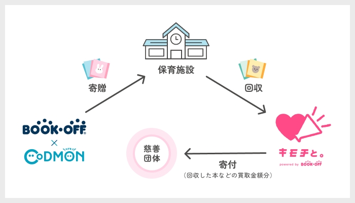 株式会社コドモン(本社:東京都港区、代表取締役:小池義則)は、ブックオフグループホールディングス株式会社(本社:神奈川県相模原市、代表取締役社長:堀内康隆、以下、ブックオフ)と連携し、保育施設へ児童書・絵本を中心とした書籍を寄贈する取り組みを2月9日(木)に開始しました。