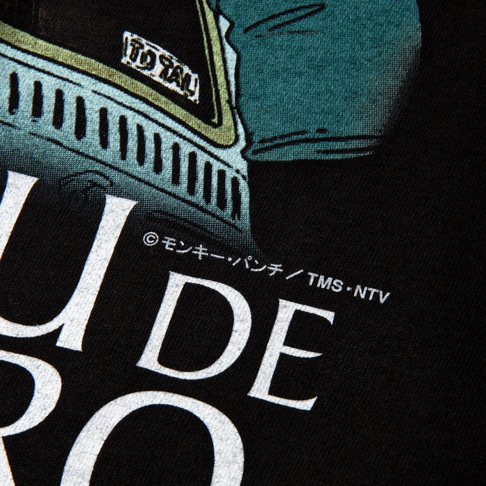 主要キャラクターの他、城や爆破シーンなど、作品の魅力を存分に表現したビジュアルを、版のサイズを最大限使用しフロントにプリント。前作以上の色数を今回も最高の分版技術で15版に分版。15版でこれだけの色数、緻密な爆破シーンや城の淡い光などアニメーションの表現をシルクスクリーンで再現しています。