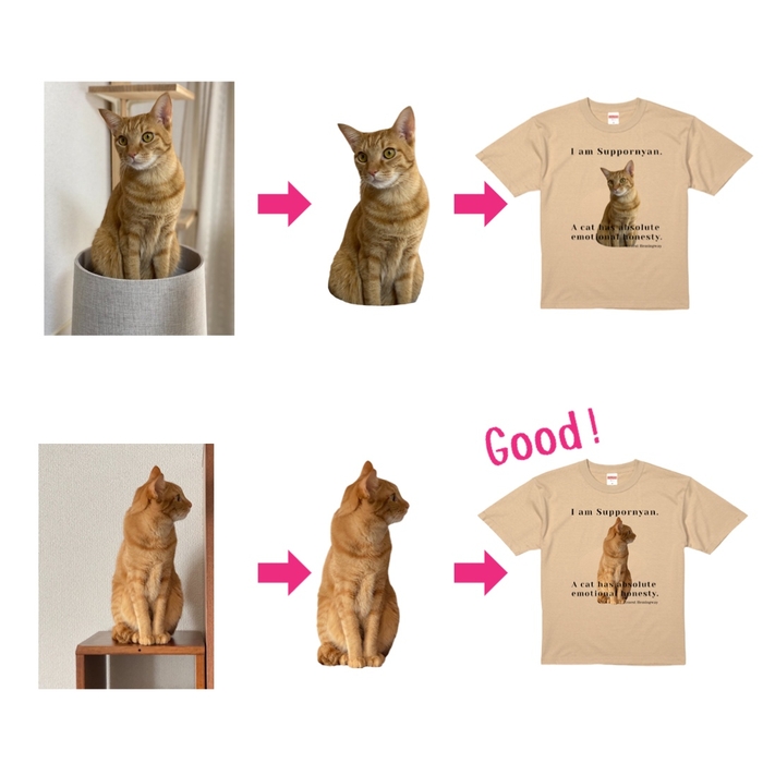 いかがでしたか? 切り抜き加工をする場合のお写真選びは、切り抜き後の猫ちゃんをイメージすることが重要です。 うちの子グッズを作る際には、ぜひ参考にしてみてください♪