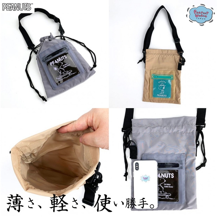 速報 新商品発売開始 薄さと軽さとサイズ感。使い勝手のみを追求したスヌーピーの巾着バッグでお出かけを。