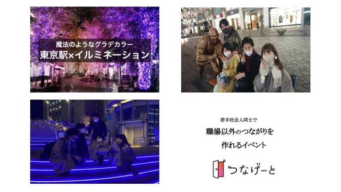遊びのサークルやイベントを通してカジュアルに友だちができるフレンディングアプリ「つなげーと」を運営する株式会社つなげーと(本社:東京都港区、代表取締役:鈴木一郎)は、SDGsの目標の一つである「すべての人に健康と福祉を」の達成に向けて東京丸の内で1月12日(水)に若手社会人同士がイルミネーションを見ながら交流するイベントを実施しました。