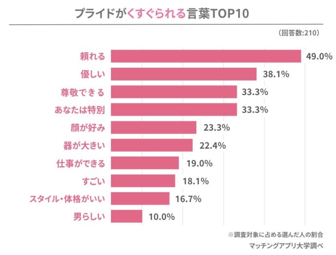 約半数の男性が「プライドがくすぐられる言葉」として「頼れる」を選びました。