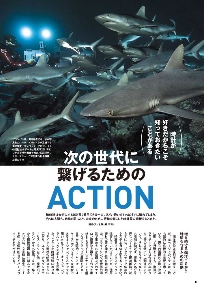 連載「レディスウオッチ通信」今号は5P特集で最新ウオッチをトレンド別に掲載。思わず溜め息が漏れるブルガリのハイジュエリーから始まる、色鮮やかな人気ブランドのタイムピースは必見です。「未来に繋げるためのACTION」では、時計業界が取り組んでいる持続可能な社会の実現に向けて取り組む代表各社の事例を取り上げました。ベテラン修理技術者や時計専門学校の実態がわかる連載記事と合わせ、腕時計への興味から広がる幅広い世界をお楽しみください。