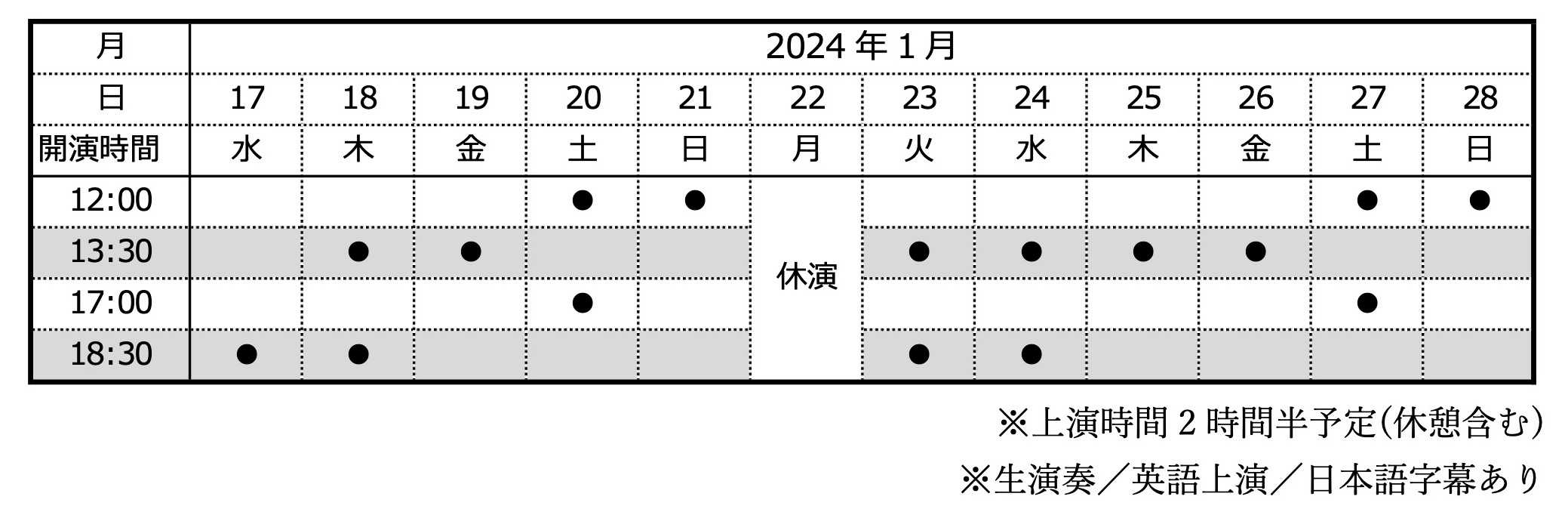 日時 : 2024年1月17日(水)〜1月28日(日) 全16公演
