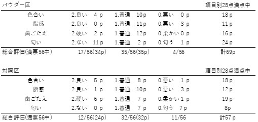 ■開封直後のパウダー区と対照区に対する官能検査結果