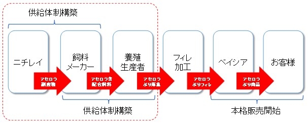 ベイシアではすでに近畿大学とニチレイフーズが共同開発した「アセロラ真鯛®」を全店舗で本格販売しており、今後も連携してアセロラ魚をお客様に提供します。