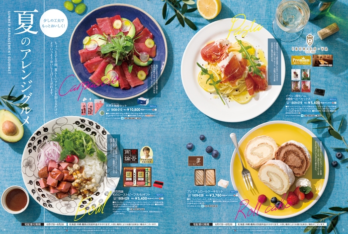 夏の売れ筋商品や人気店のグルメ商品、お手軽グルメ、おうち時間をより楽しめるお取り寄せグルメ等の特集を組み、見ていて楽しいページ構成に仕上げました。