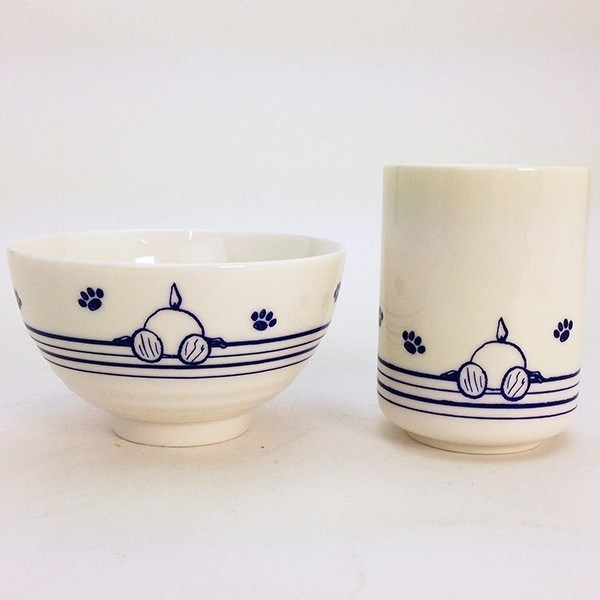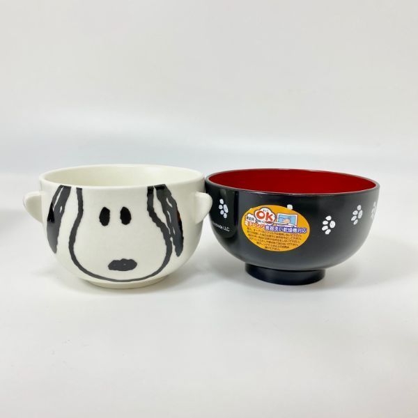 スヌーピーと同じ小ぶりなサイズのお茶碗と汁椀です。使っているときだけではなく、食器棚に置いてもかわいいセットですよ♡