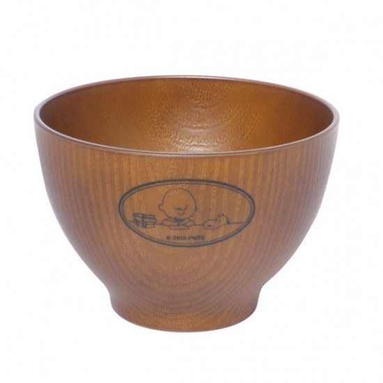 ワンポイントのスヌーピーとチャーリー・ブラウンが描かれた汁椀は、木目調でどんなお茶碗にも合うデザイン。サイズは7.4cm×10.8cm。スヌーピーのお茶碗と並べて使いたいアイテムです♡