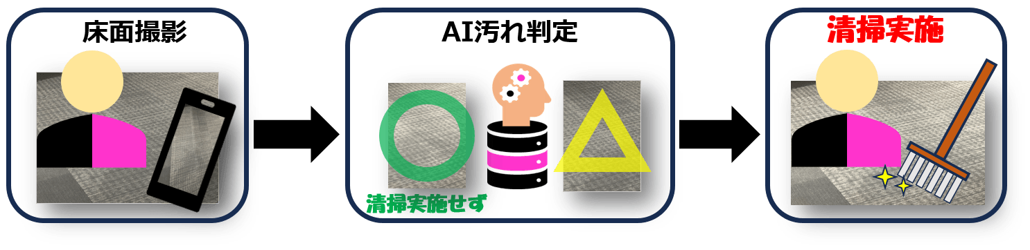 ②AI画像診断型CBMシステムの開発:スマートフォンで特定の床面を撮影すると、AIが熟練清掃員の「匠の目」と同等の精度で美観状態を判定するAI並びにシステムの開発