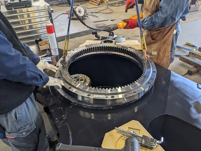 アーカックスの胴体部分に搭載されている製品は、外径が756mmの内歯仕様の旋回ベアリングとなっております。
