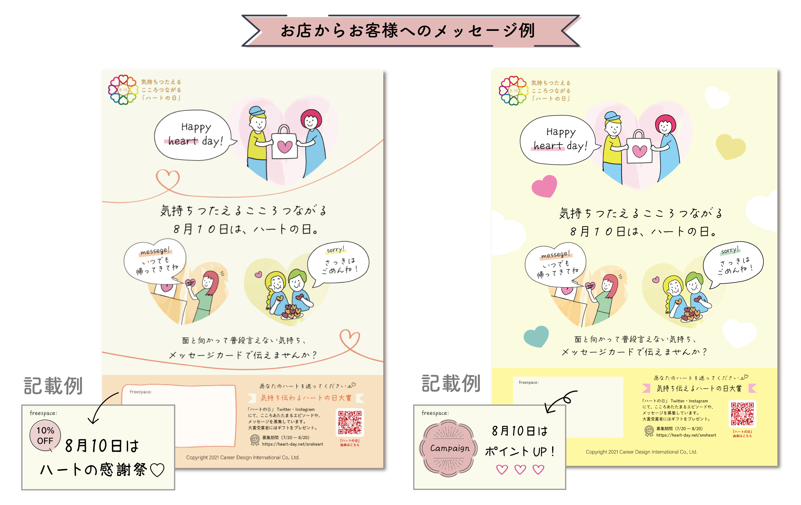 Well-beingとキャリアデザイン支援を行うキャリアデザイン・インターナショナル株式会社(所在地:東京都港区、代表:渡邉 文子)は、同社が制定した記念日8月10日「ハートの日」のサイトにて、YouTubeドラマ化するハートフルなエピソードを2023年8月10日から9月30日まで募集いたします。