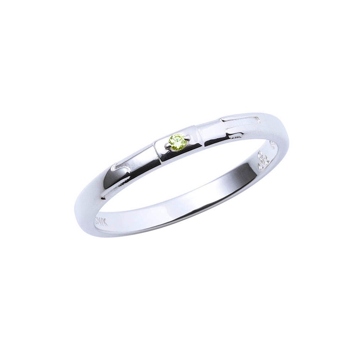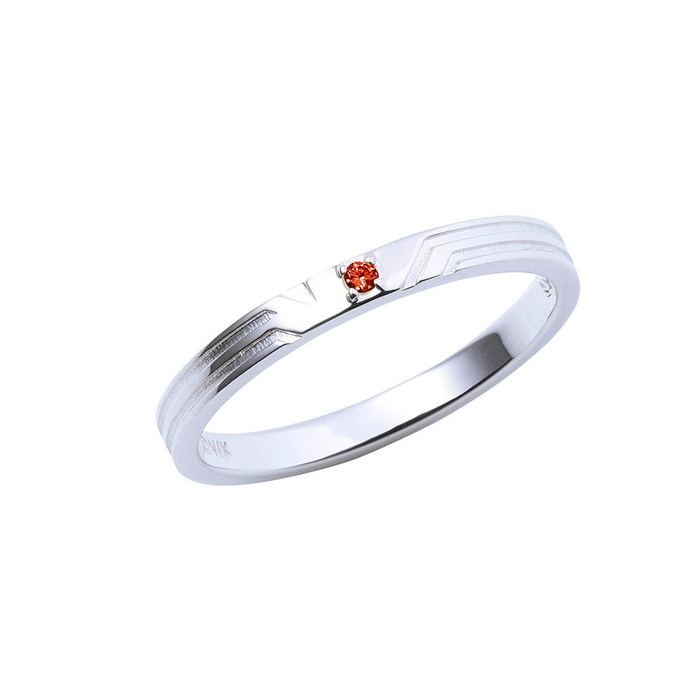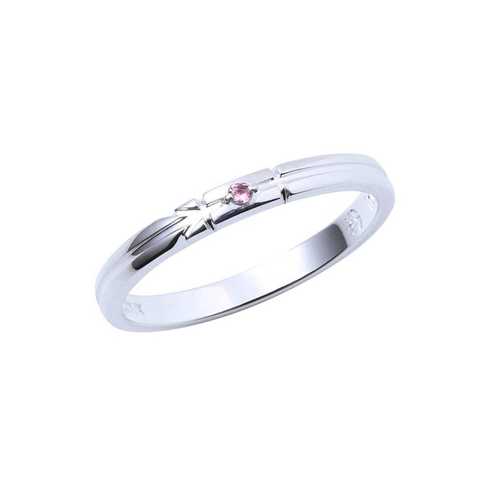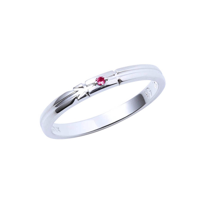 平打ちフォルムのリングに部隊ロゴをさりげなく取り込み、イメージカラーストーンをセット。