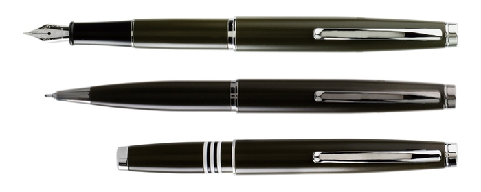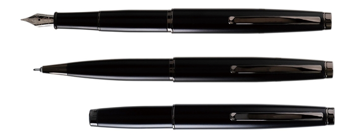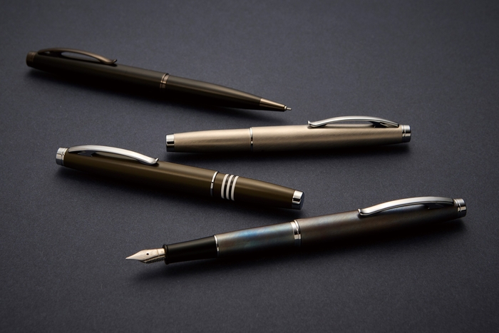 第二次世界大戦時に輸送機として運用され、「スカイトレイン」の愛称でも知られるダグラス社製の飛行機「C-47 ダコタ」にインスパイアされたそのデザインは、航空機の持つ流線型の機能美を見事に表現しています。また「スリップ-イン キャップ」と銘打ったキャップ部分も特徴的で、精緻な設計により滑空するかのごとくスムースな着脱を実現しています。サイズ感もキャップ装着時で全長 121 ㎜と非常にコンパクトで、携帯性が高く実用的です。お好みで尻軸にキャップを装着する事により万年筆で全長 156 ㎜、ゲルペンで 149 ㎜となりますので、長時間の筆記などにも適応しています。4色のカラーバリエーションで、万年筆とゲルペンそれぞれの筆記モードで展開します。ご使用のたびに精密さと、素朴で質実な美しさを感じていただける秀作です。