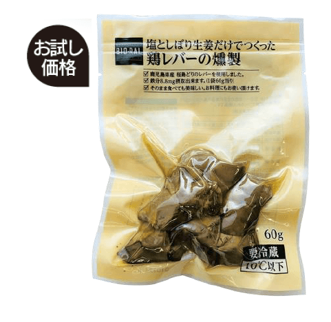 鹿児島県産桜島どりのレバーに塩としぼり生姜だけで下味をつけ、時間をかけじっくり燻製しました。