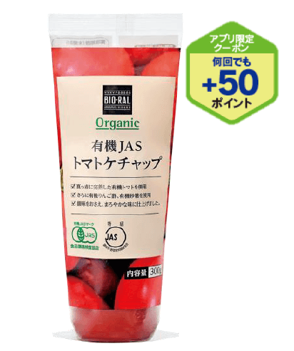 完熟した有機トマト、有機砂糖のコク、まろやかな酸味の有機りんご酢を使用したトマトケチャップ。テレビ番組「サタデープラス」の人気企画「試してランキング」にてケチャップ編の総合1位に選ばれ、トマトの旨みがおいしいと大好評でした。