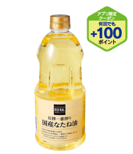 BIO-RALで人気の油シリーズの一つ!「圧搾一番搾り 国産なたね油」