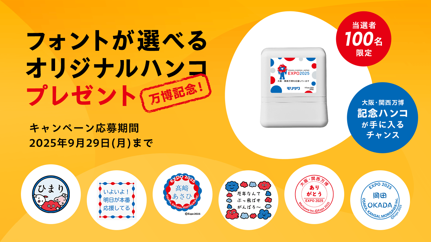 オリジナルスタンプ作成サイト「フォント de スタンプ」で作成したデジタルスタンプが、本物のハンコになって届くプレゼントキャンペーン「万博記念!フォントが選べるオリジナルハンコプレゼント」を実施いたします。自分の名前や好きな言葉、推しワード、オリジナルのメッセージなど、選んだ言葉とフォントがハンコになります。ハンコのハンドル部分は、大阪・関西万博記念としてミャクミャクのデザインとなっており、大阪・関西万博の記念品としても思い出に残るデザインです。