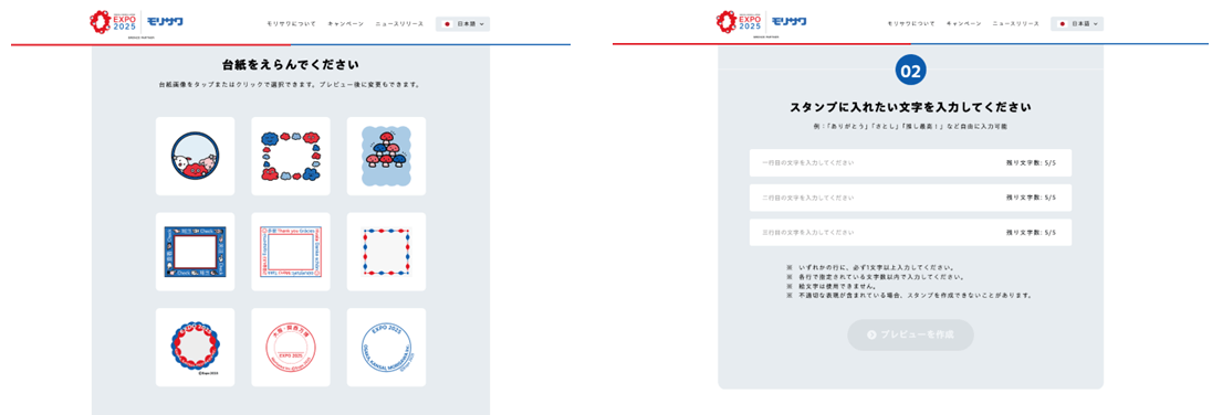 株式会社モリサワ(代表取締役社長:森澤彰彦 本社:大阪市浪速区、以下モリサワ)は、2025年日本国際博覧会(以下、大阪・関西万博)モチーフのデザインも選べるオリジナルスタンプ作成サイト「フォント de スタンプ」を8月6日(水)より公開いたします。