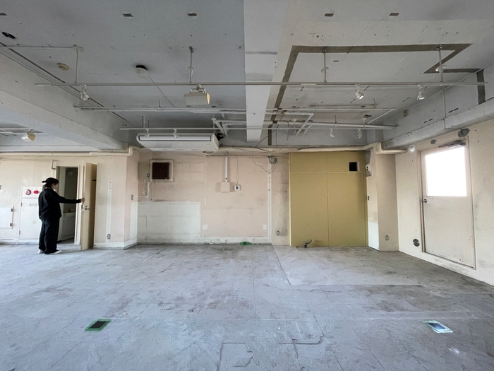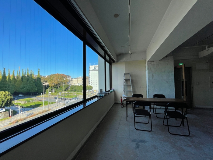 外苑銀杏並木目の前!窓からの眺望はまるで絵画のようなスケルトン物件。天井張りされていた区画をコンクリ剥き出し工事してそのまま居抜きで募集。
