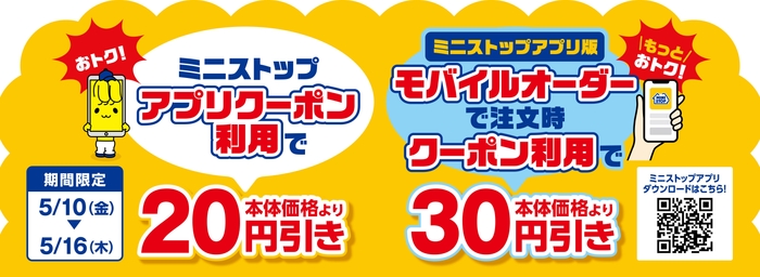 さらに、ミニストップアプリで、本体価格より20円引クーポン配信!