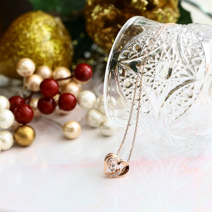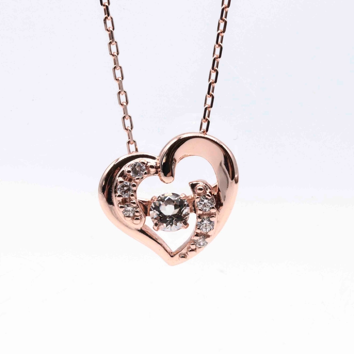 今回、人気のハートに緩やかなカーブとラインストーンが煌めく女性らしいデザインで、小ぶりながらも揺れる存在感あるダンシングストーンが登場。