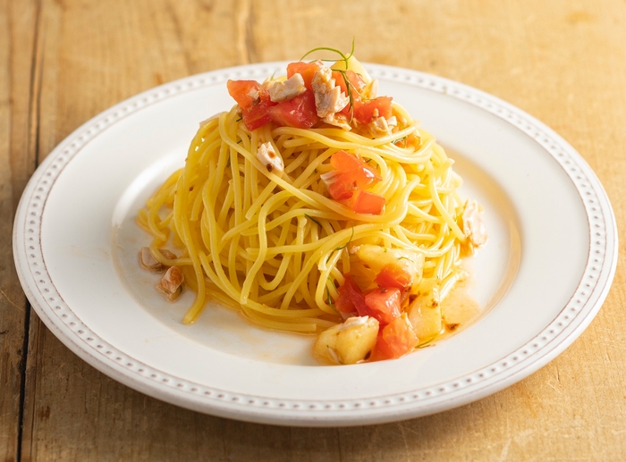 さっぱりオイルベースのソースに、ツナとトマトを絡め、ディルの爽やかさをプラスしました。