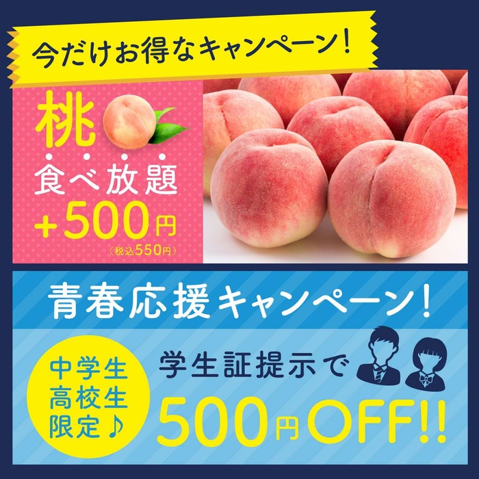 期間中は、ビュッフェ価格にプラス¥550(税込)で「白桃」の食べ放題がお楽しみいただけます。