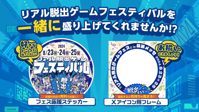 全世界で累計1,300万人以上を動員しているリアル脱出ゲームを企画制作する株式会社SCRAP(本社:東京都渋谷区、代表:加藤隆生)は、幕張メッセ展示ホール4~7にて8月23日(金)~25日(日)の3日間限定で開催される、数多の新作コンテンツが集結するフェスティバル『リアル脱出ゲームフェスティバル』の詳細情報を発表いたします。