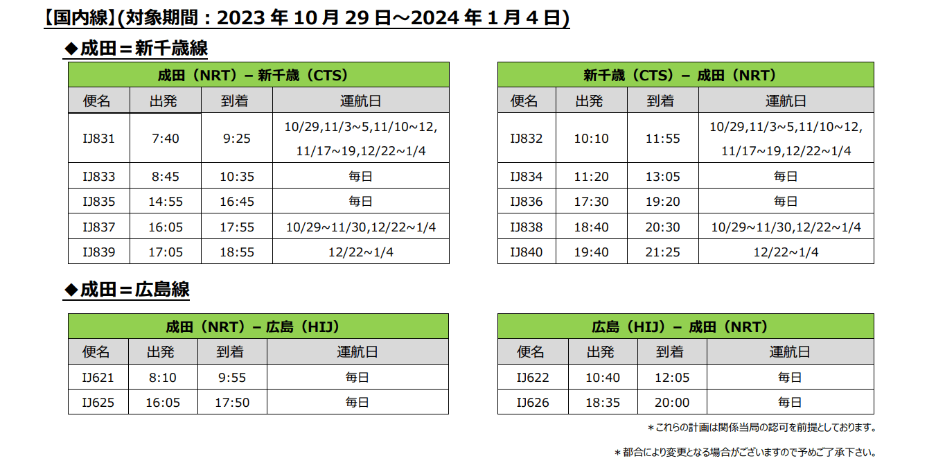 スプリング・ジャパン株式会社(本社:千葉県成田市、代表取締役社長:米澤 章、以下:スプリング・ジャパン)は、2023年冬ダイヤの国際線の増便および国内線の運航を以下のとおり決定し、本日9月7日(木)15時より販売を開始いたします。