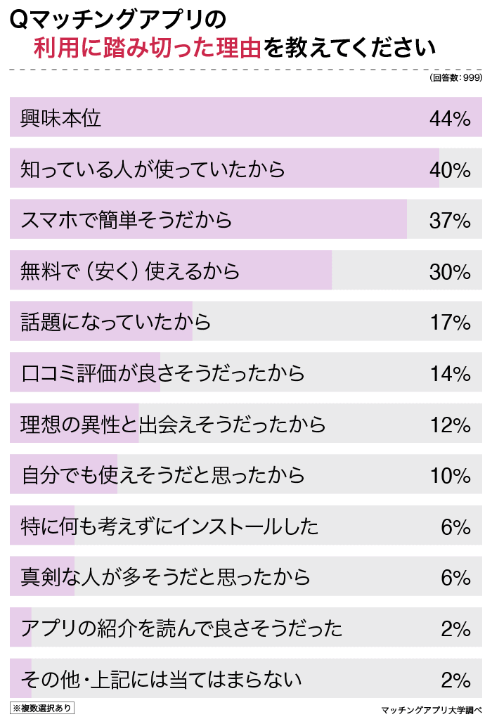 マッチングアプリ利用のきっかけは興味本位がNo.1