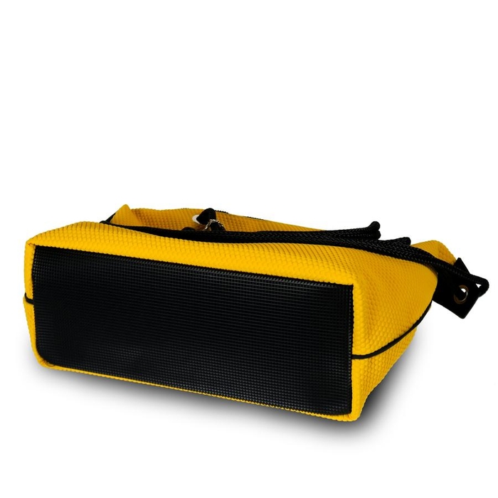 ロゴチャームや、ロープ先部分、底保護パーツなどイタリア製らしい細部まで拘ったデザイン。