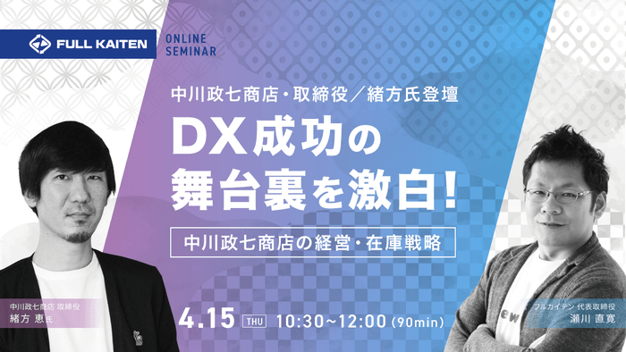 そんな中川政七商店のデジタル推進の指揮を執る取締役CDO緒方恵氏がフルカイテンのウェビナーに登壇します。