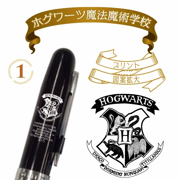 まずは、ホグワーツ魔法学校のエンブレムがデザインされた万年筆をご紹介します。ブラックのフォルムがクールですよね。お馴染みのホグワーツのエンブレムも、シッカリ描かれています。4つの寮のモチーフが集合したエンブレムが、カッコいいです。
