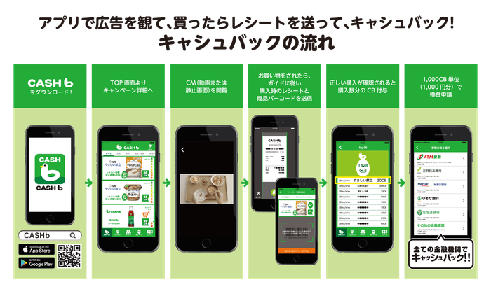 ※1 日本初のキャッシュバックアプリ、キャッシュビー。業態を問わず利用でき、ポイントではなくキャッシュで消費者に還元される。アプリの利用者は、2020年8月現在、約35万人に上る。https://www.cashb.co.jp/ja/