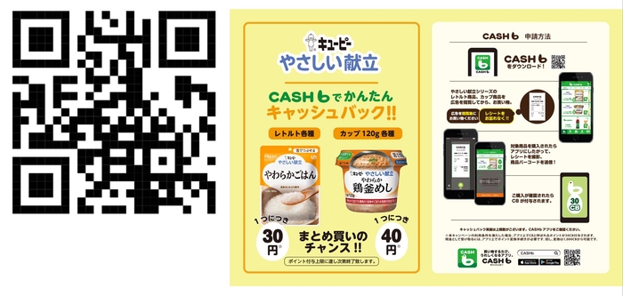 市販用介護食「やさしい献立」の購入応援企画。「CASHb」で現金化できるキャッシュバックポイントがもらえるキャンペーンを実施!