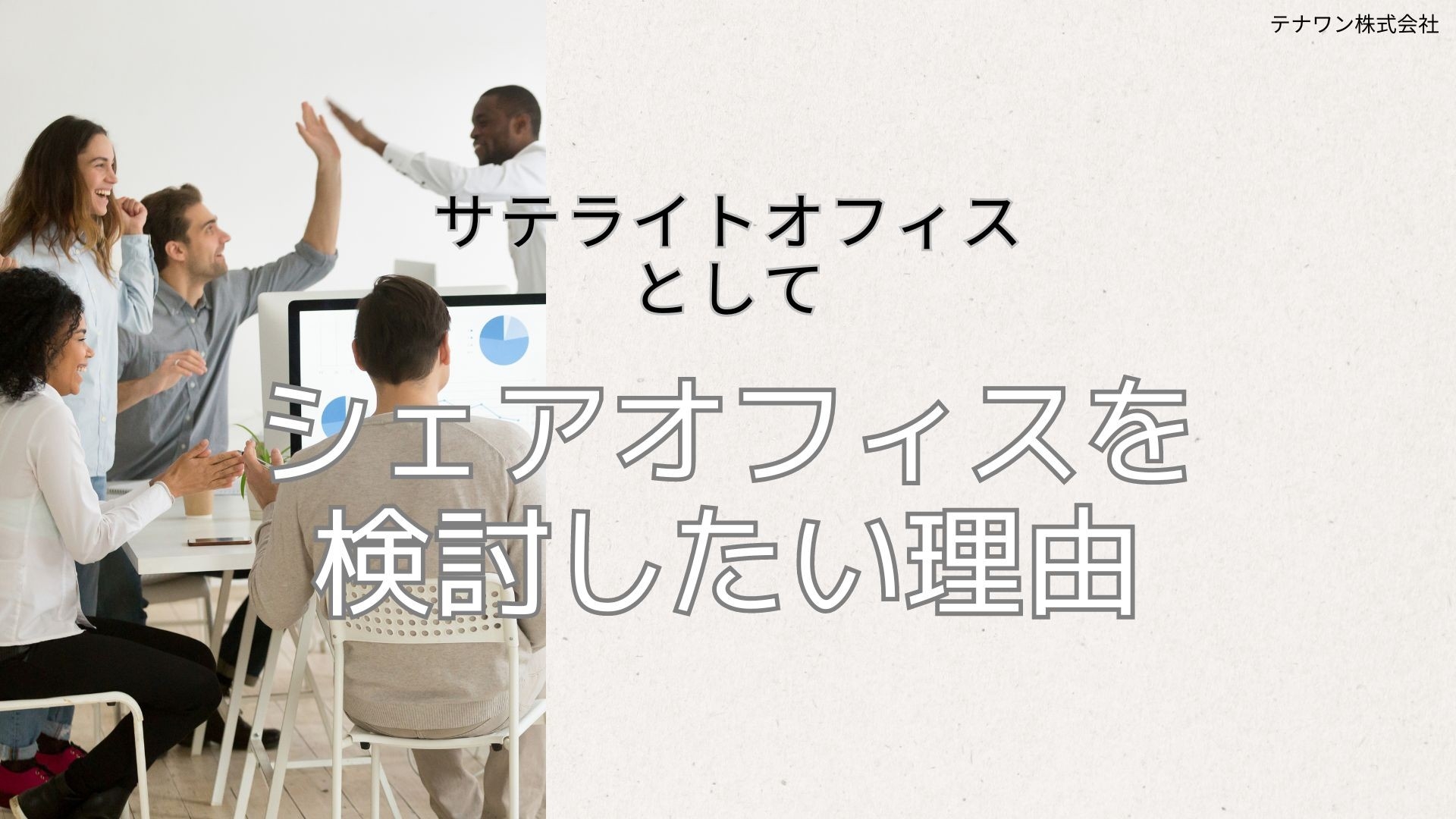 そのために、サテライトオフィスの導入を検討されている企業様には、サテライトオフィスとしてシェアオフィスの利用を検討いただきたいと思っています。