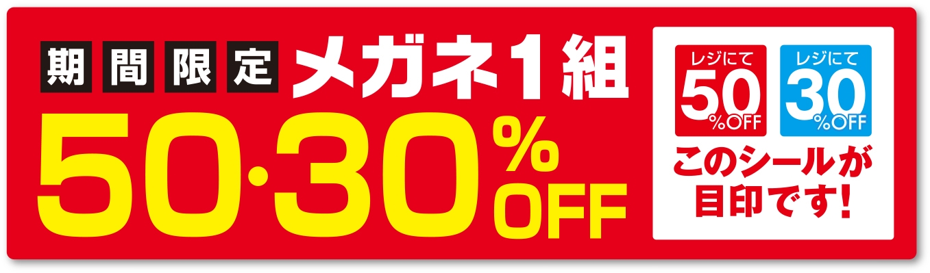 期間限定でメガネ1組30%・50%コーナーをご用意。