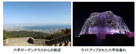 日本でも有数の眺望スポットである六甲ガーデンテラスでは、明石海峡から大阪平野、関西国際空港まで広がる大パノラマの眺望、夜には「1,000万ドルの夜景」と評される美しい夜景をご覧いただけます。最大標高888mの「自然体感展望台 六甲枝垂れ」では、アーティスト・伏見雅之氏の演出によるライトアップイベント「Lightscape in Rokko しょくぶつのあかり」も楽しめます。