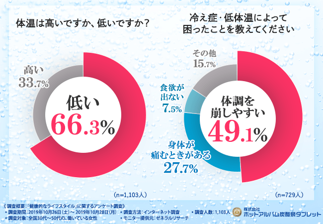 そこで、「体温は高いですか、低いですか?」という質問したところ、7割近くの女性が『低い』(66.3%)と回答しました。