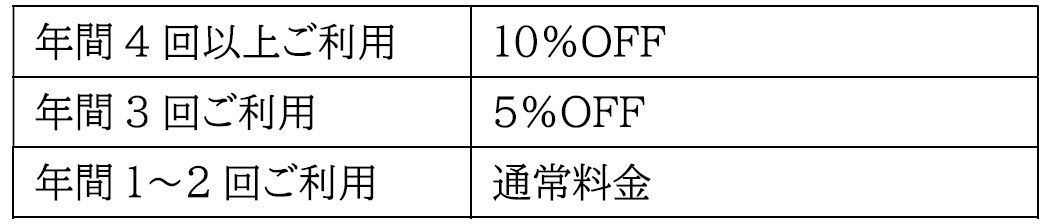 貸切利用基本料金から利用回数に応じて最大10%割引