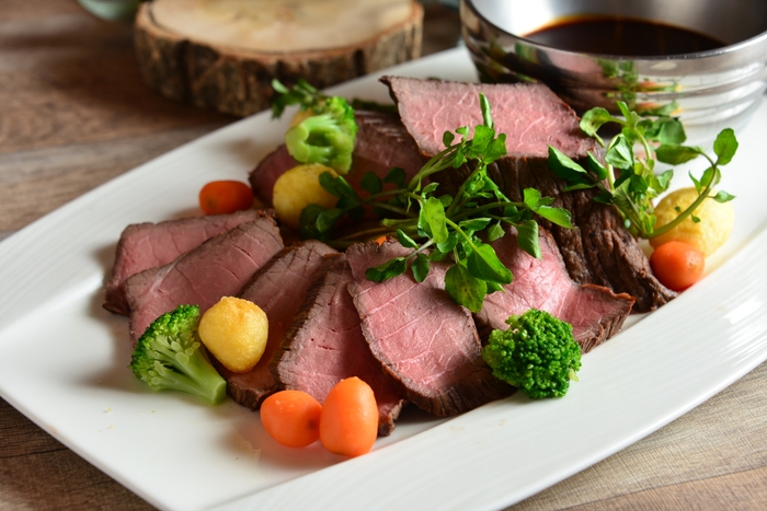 茶美豚のローストポーク ~シャリアピンソース~ / 牛肉の赤ワイン煮込み /