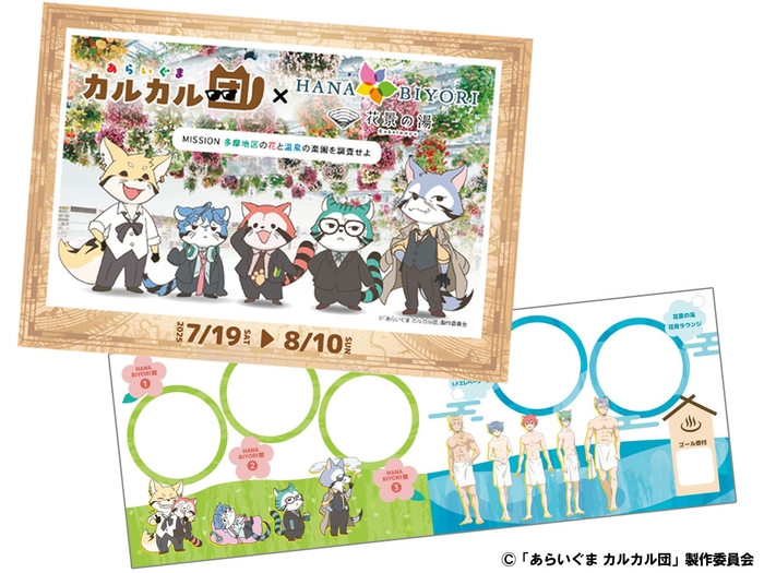 日本アニメーション株式会社(本社:東京都中央区、代表取締役社長:石川和子)がアニメーション制作・ライセンス展開を行う『あらいぐま カルカル団』と東京都稲城市にある「HANA・BIYORI」・「花景の湯」 がコラボレーションしたイベント『あらいぐま カルカル団 × HANABIYORI・花景の湯~MISSION 多摩地区の花と温泉の楽園を調査せよ~』 の開催が決定いたしました。 2025年7月19日(土)~2025年8月10日(日) の期間、スタンプラリーを開催するほか、コラボレーションメニューやグッズの販売も行います。
