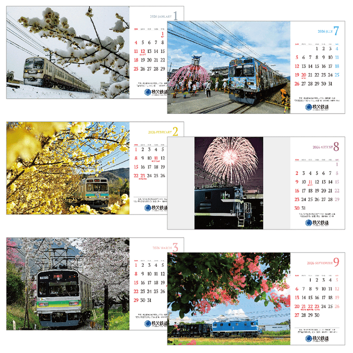 秩父鉄道株式会社(本社:埼玉県熊谷市、代表取締役社長:牧野 英伸)では、2025年10月11日(土)から、秩父鉄道沿線の四季折々の美景をおさめた「秩父路カレンダー」、SLパレオエクスプレスの迫力が伝わる「SLカレンダー」、秩父鉄道の電車や電気機関車を集めた卓上タイプの「秩父鉄道の車両カレンダー」の2026年版を販売します。各カレンダーには、第22回秩父鉄道写真コンテスト入賞作品の力作から選りすぐった写真を使用しています。先行販売として、2025年10月5日(日)YOKOHAMAトレインフェスティバル2025においても販売を行います。